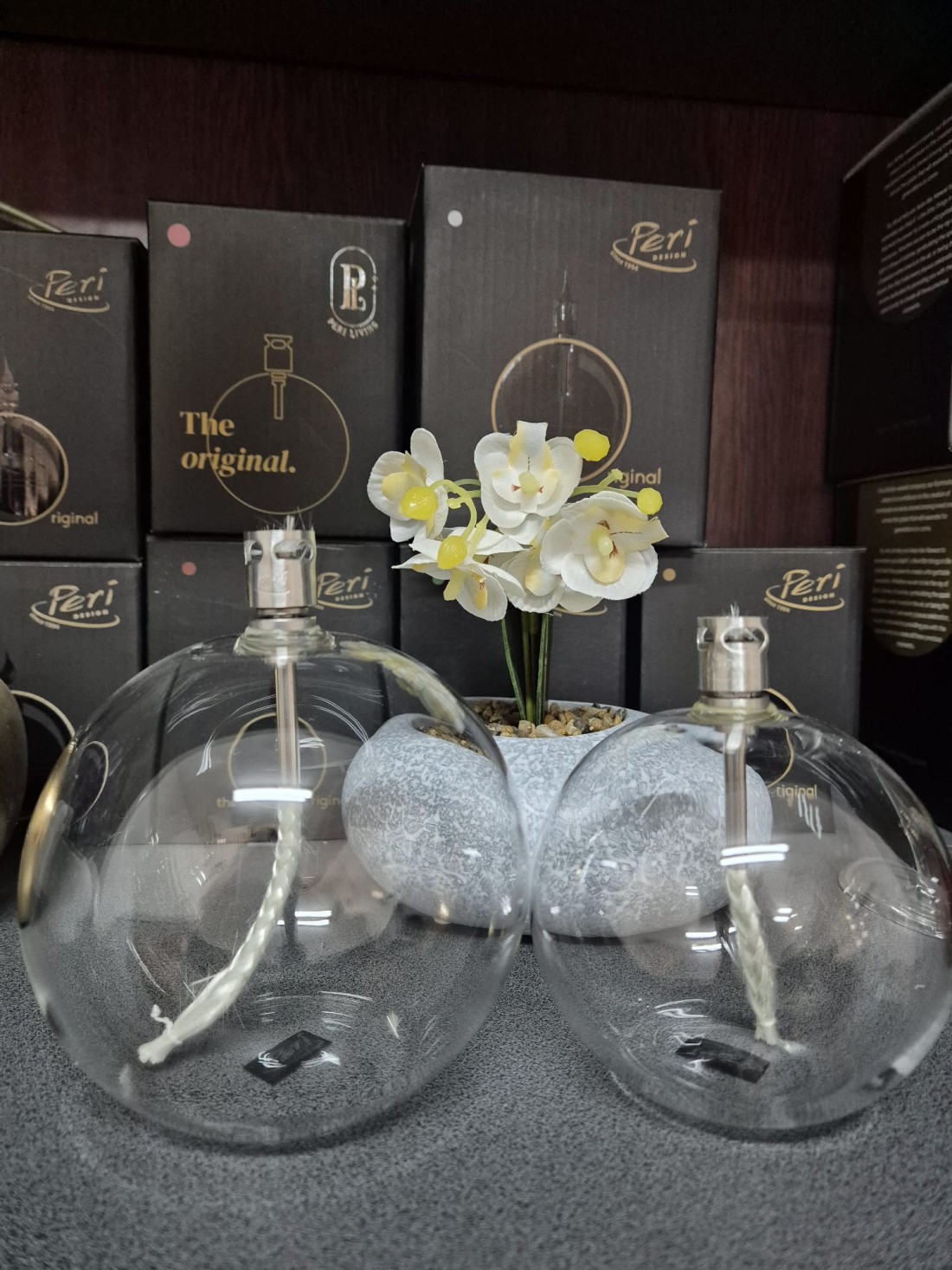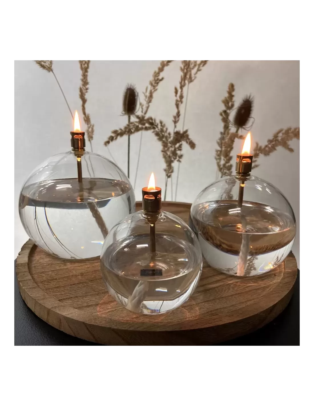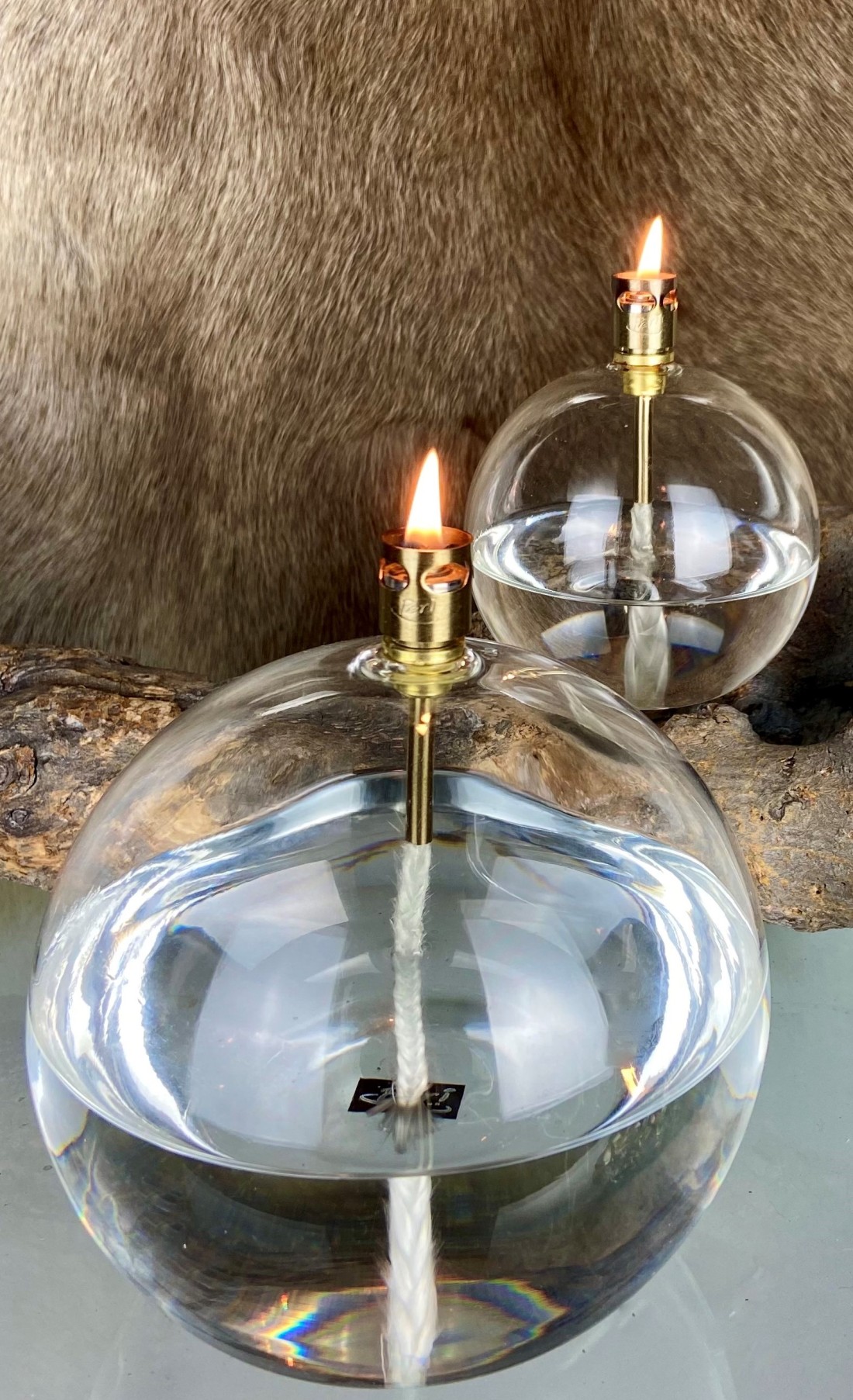 Lămpile moderne cu ulei de parafină sub forma de bilă transparentă, crează un ambient cald și plin de eleganță fără a fumega și fără a li se consuma fitilul.