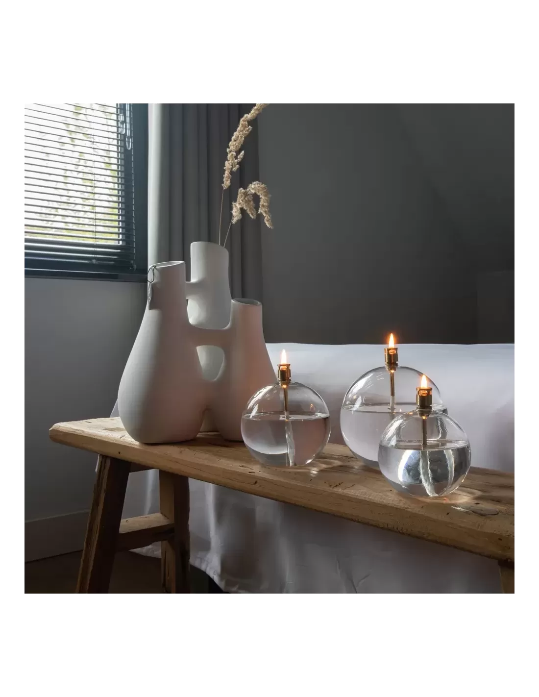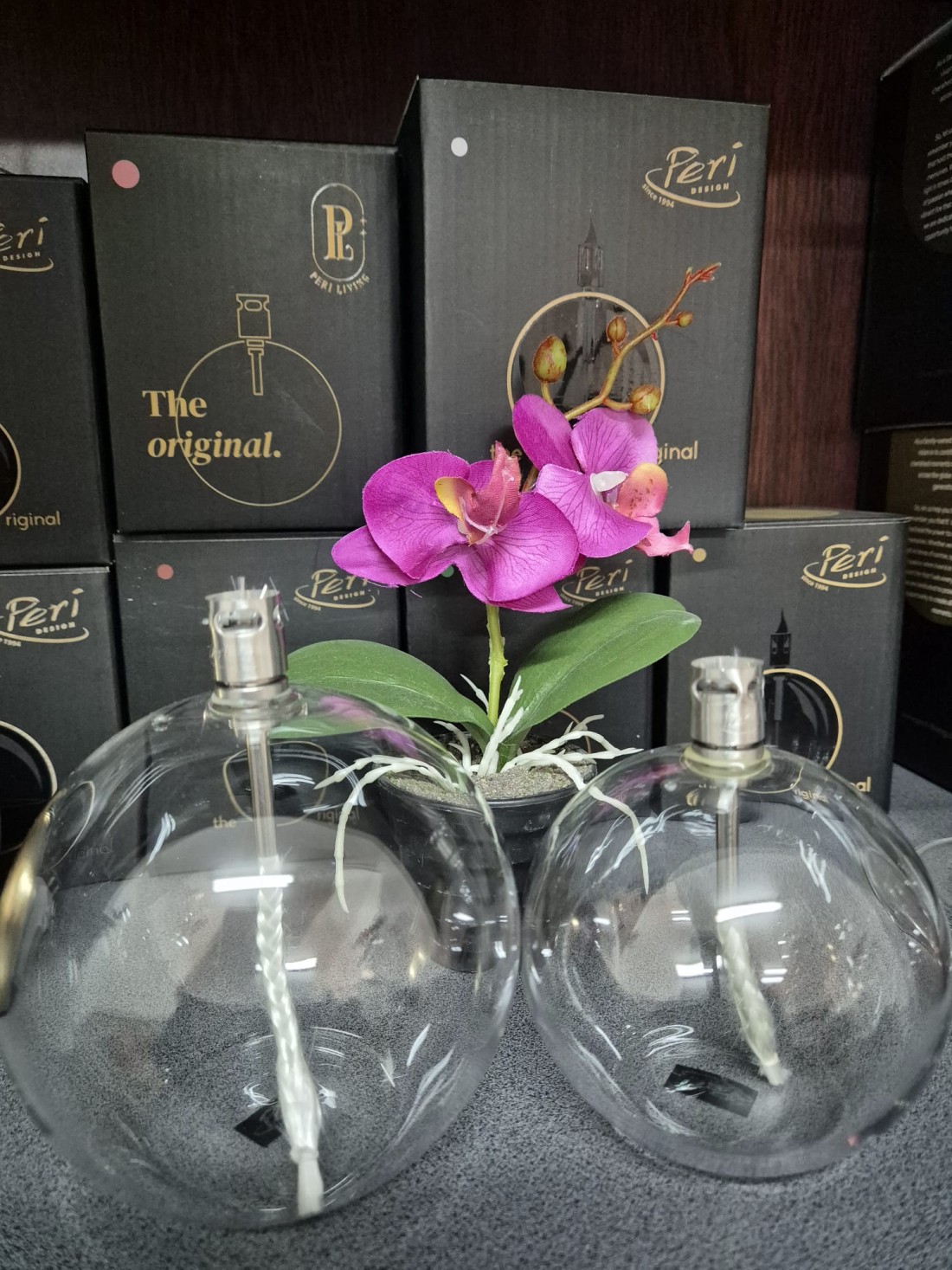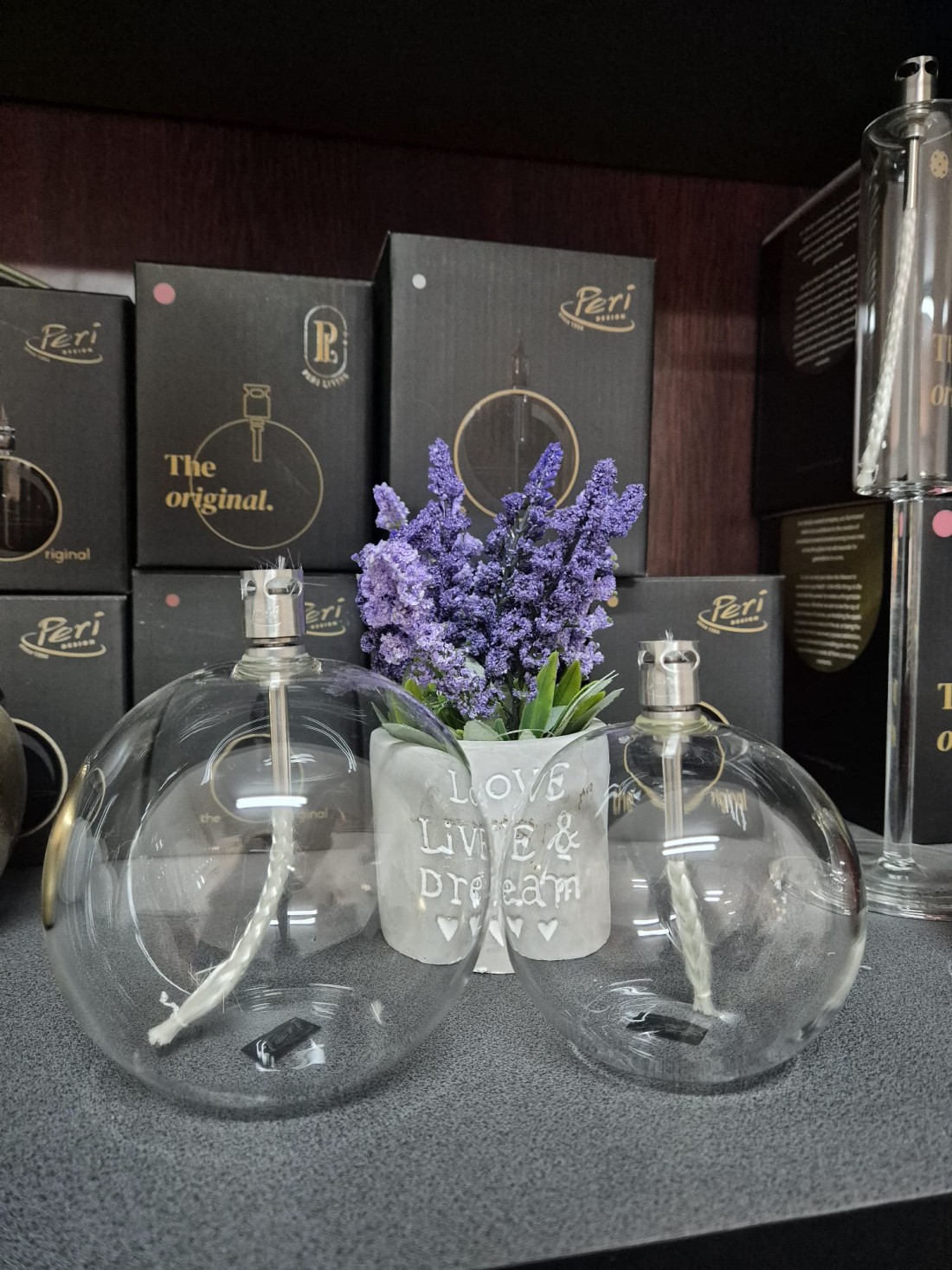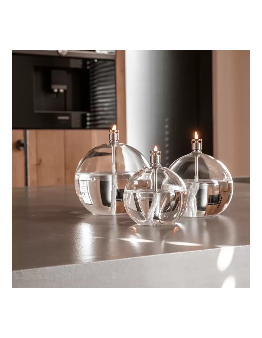 Lămpile moderne cu ulei de parafină sub forma de bilă transparentă, crează un ambient cald și plin de eleganță fără a fumega și fără a li se consuma fitilul.