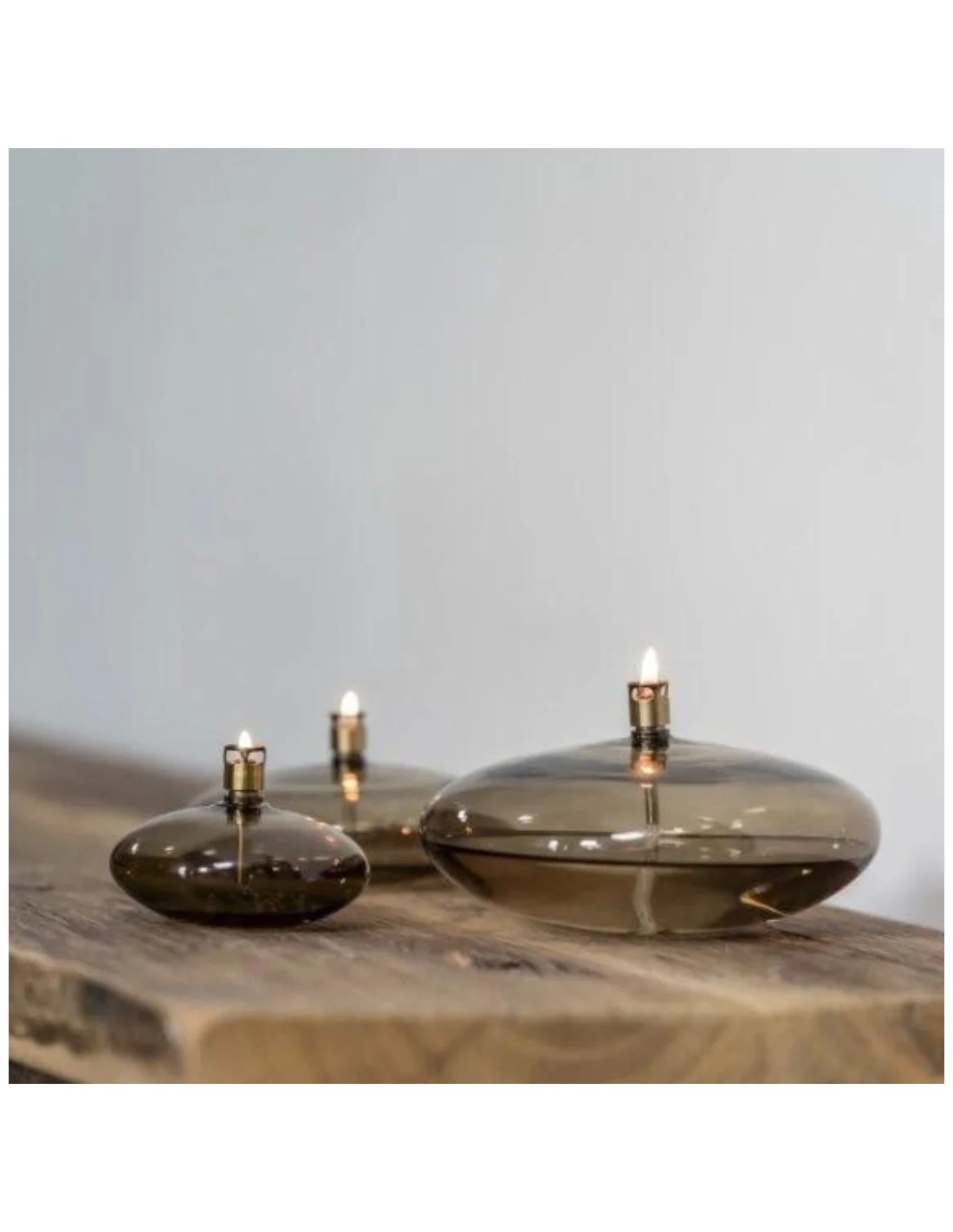 Lămpile cu ulei de parafină sub formă de disc maro, crează un ambient cald și plin de eleganță fără a fumega și fără a li se consuma fitilul.