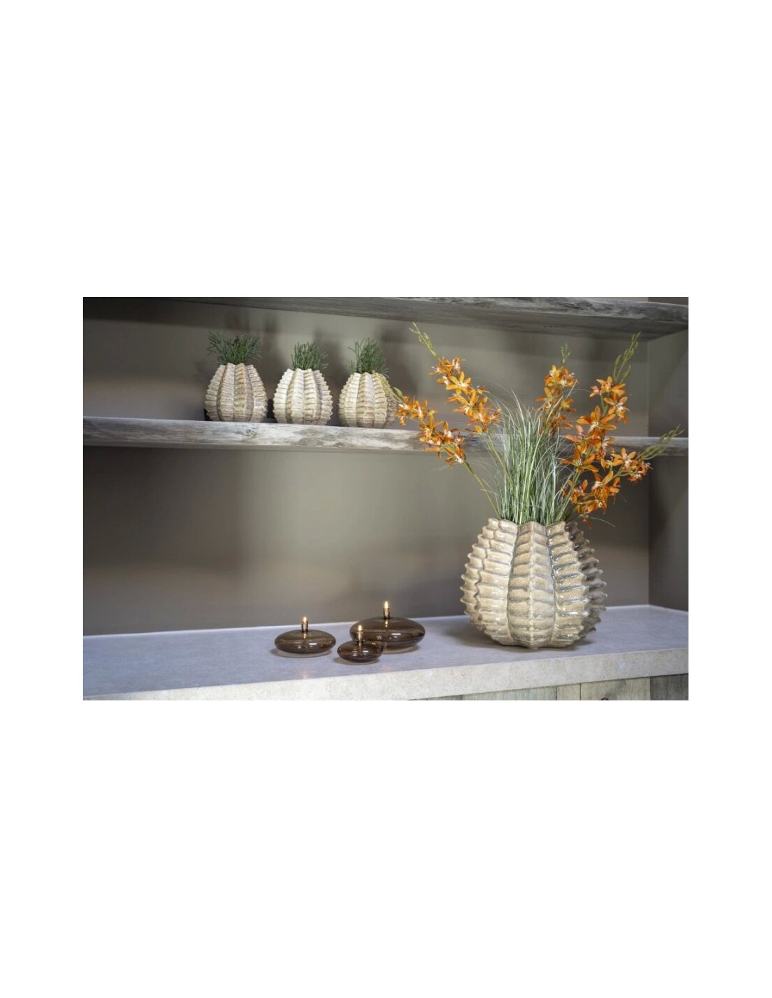 Lămpile cu ulei de parafină sub formă de disc maro, crează un ambient cald și plin de eleganță fără a fumega și fără a li se consuma fitilul.